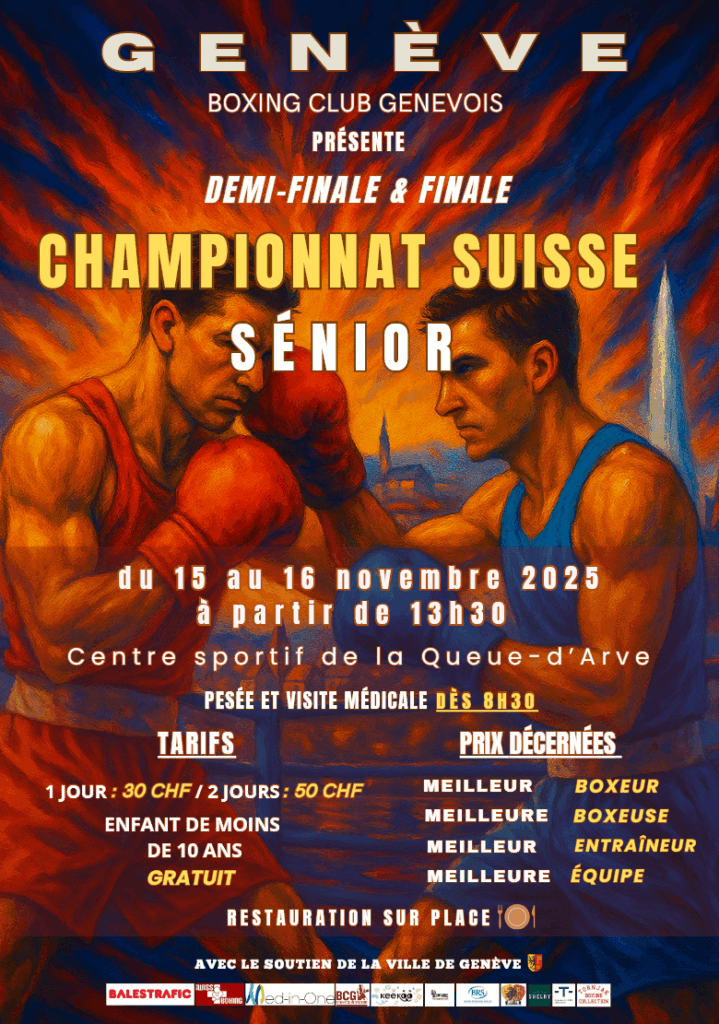 Boxing Club Genevois TOURNOIS AGBA 2024 Le BoxingClubGenevois organise le tournois AGBA le 17 et 18 février 2024 au Centre Sportive de la Queue d’Arve,